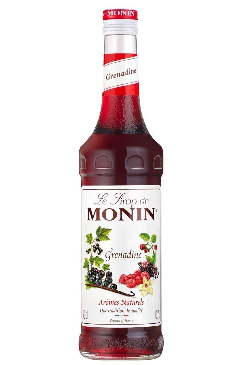 Aslen nar küspesinden yapılan grenadine şurubu adını halen korusa da içeriği 19. yüzyıldan beri değiştirilmiştir. Nitekim nar Batı'da yetişmediğinden, grenadine şurubu narın rengine ve tadına benzeyen kırmızı meyve çeşitlerinden üretilmektedir. Monin Grenadine Şurubu frenk üzümü, ahududu, mürver ve vanilyanın lezzetli bir karışımıdır. Klasik bar miksolojisinde açık ara en yaygın ve çok yönlü kullanılan bir tatlandırıcıdır. Birçok kokteyle eşlik edilebilecek Monin Grenadine (700ml) Şurubu hoş bir kırmızı renk ve hafif tatlı-ekşi tadı ile çok sevilen bir çeşittir.